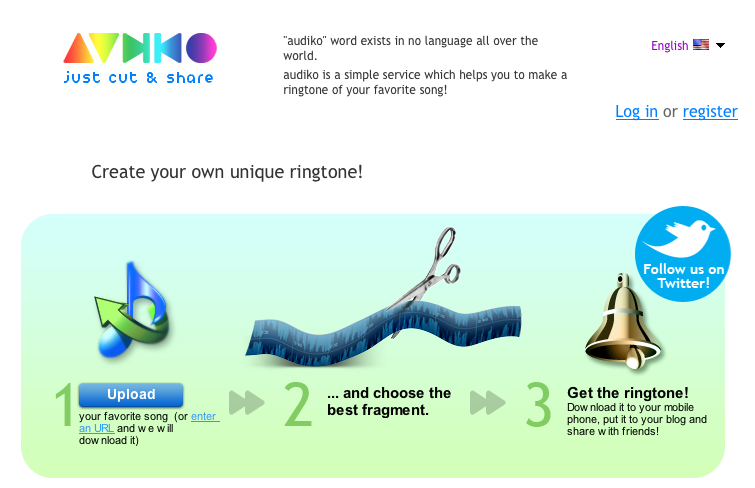 audiko is a simple service which helps you to make a ringtone of your favorite song!